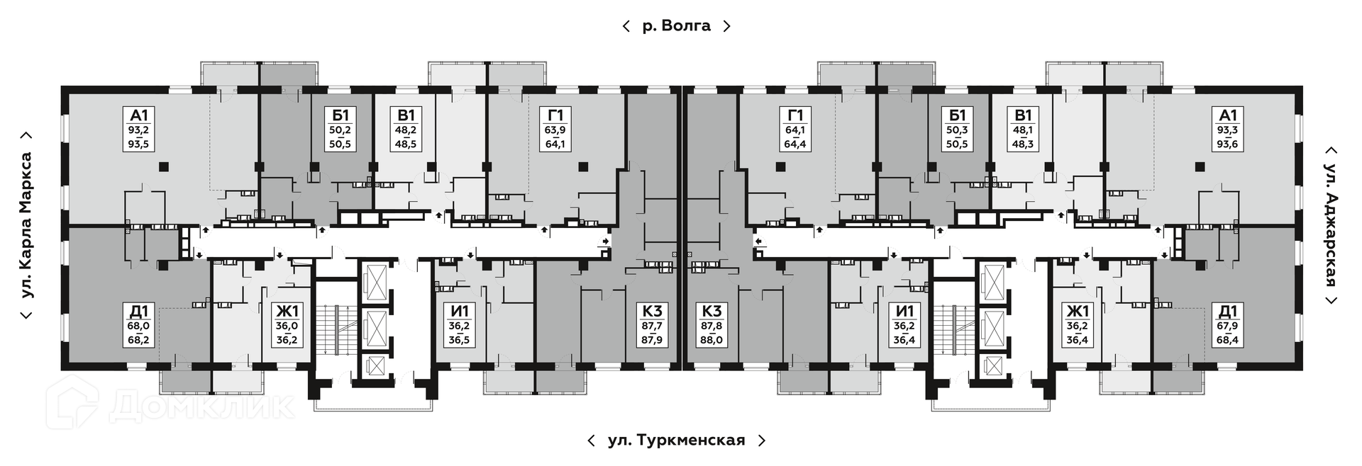 Площади квартир