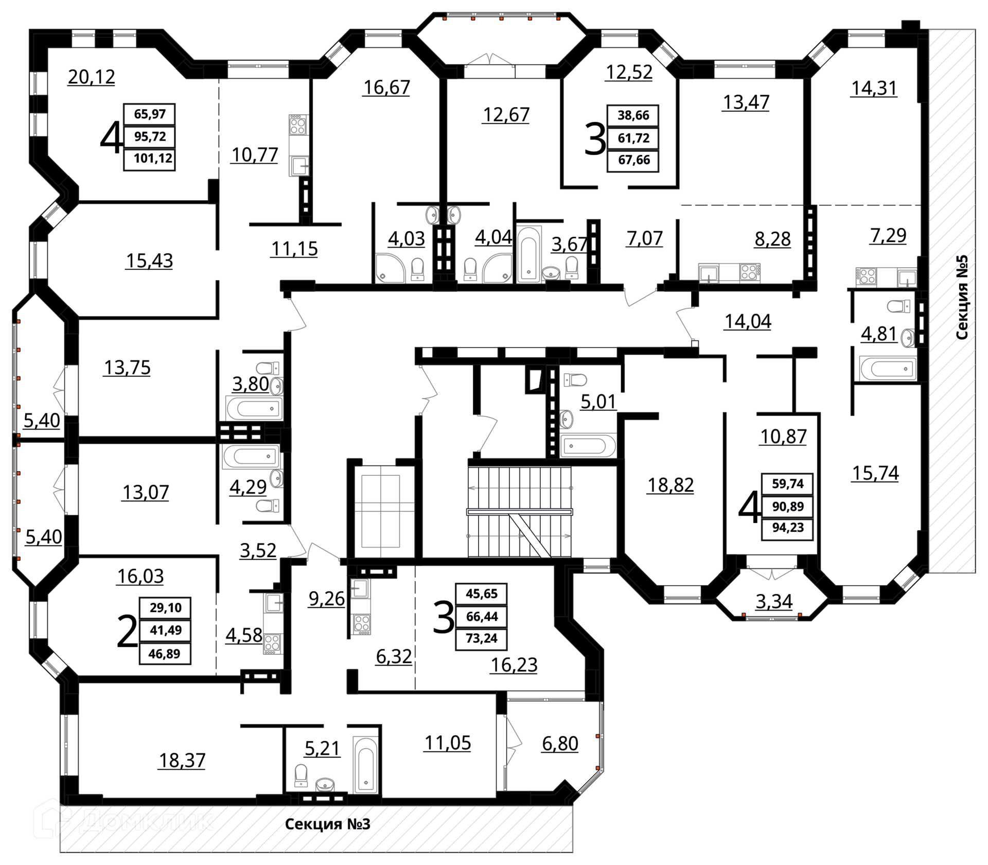 Площади квартир