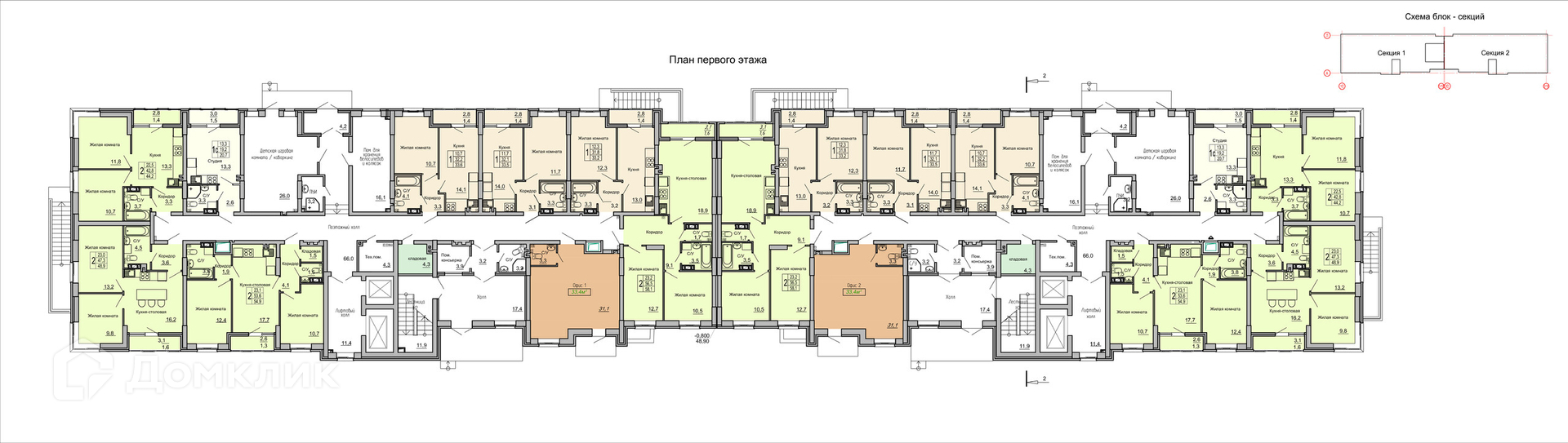 Площади квартир