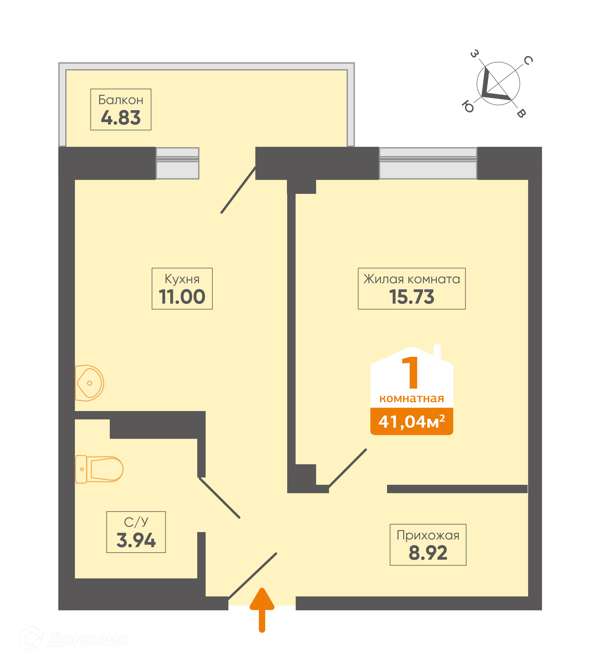 - Общая площадь: 41.04 м²