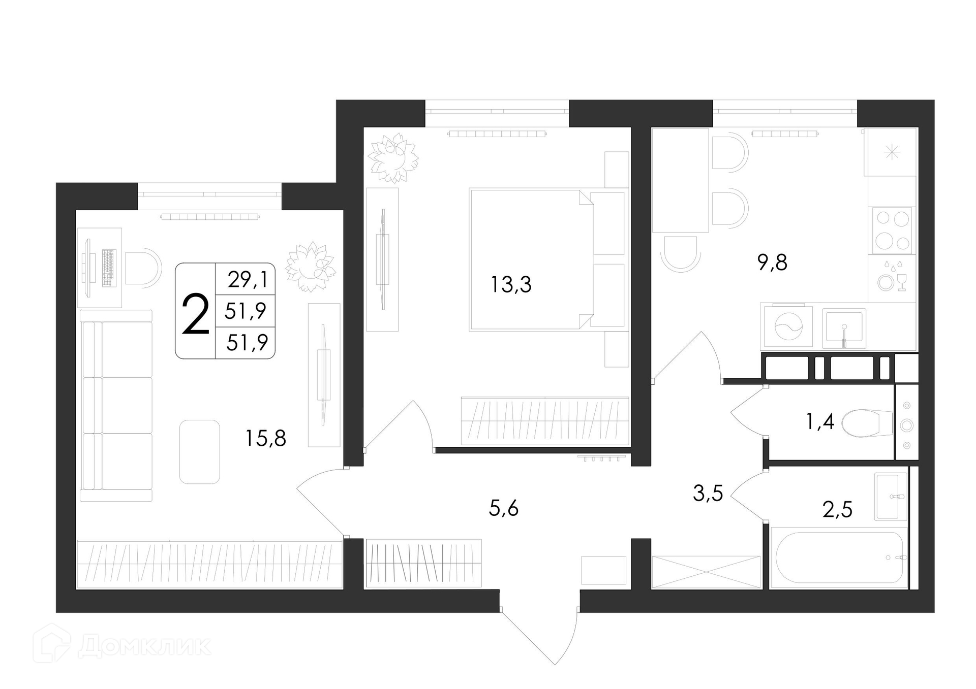 Площади квартир