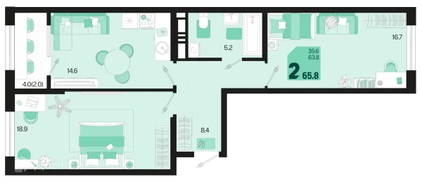 2 комн. квартира в Краснодаре в ипотеку от 56 772 руб/месяц