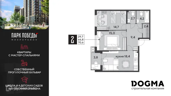 2 комн. квартира в Краснодаре в ипотеку от 66 548 руб/месяц