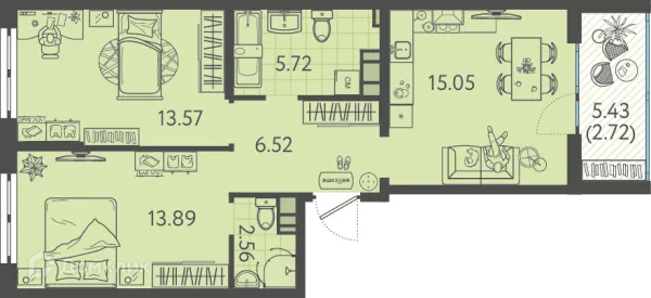 2 комн. квартира в Краснодаре в ипотеку от 63 108 руб/месяц