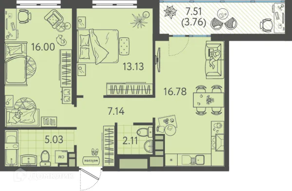 2 комн. квартира в Краснодаре в ипотеку от 59 953 руб/месяц