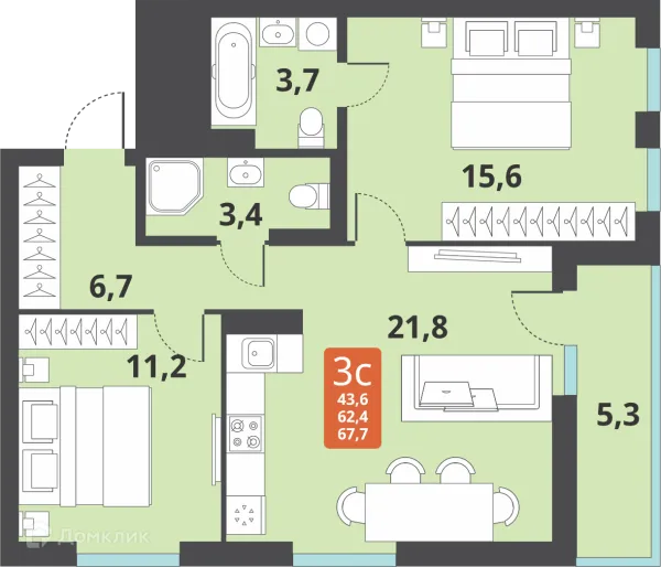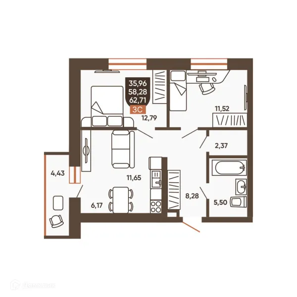 3 комн. квартира в Новосибирске в ипотеку от 60 056 руб/месяц