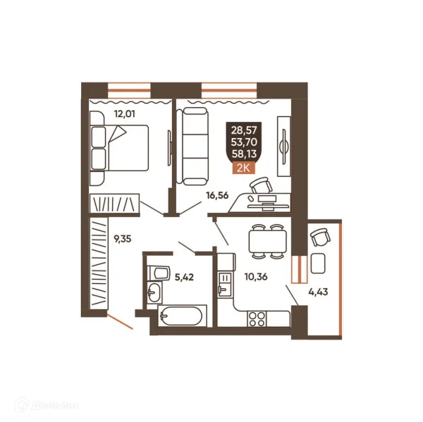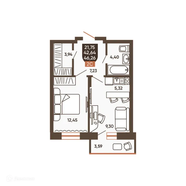 2 комн. квартира в Новосибирске в ипотеку от 45 756 руб/месяц