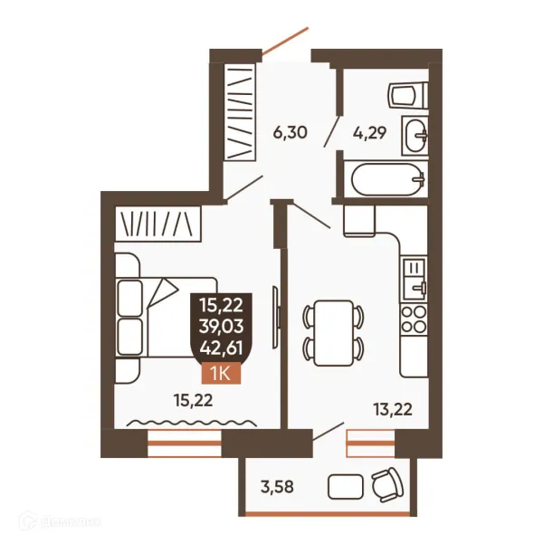 42.61 м²