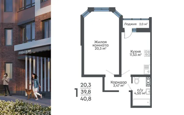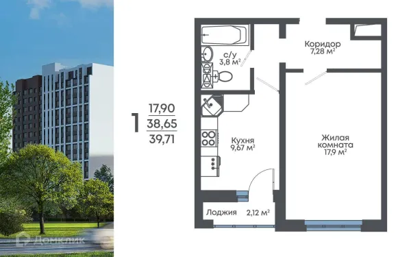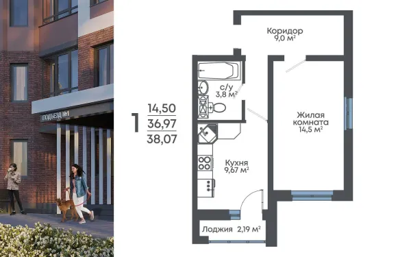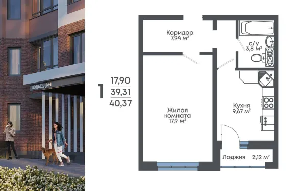 1 комн. квартира в Воронеже в ипотеку от 31 991 руб/месяц