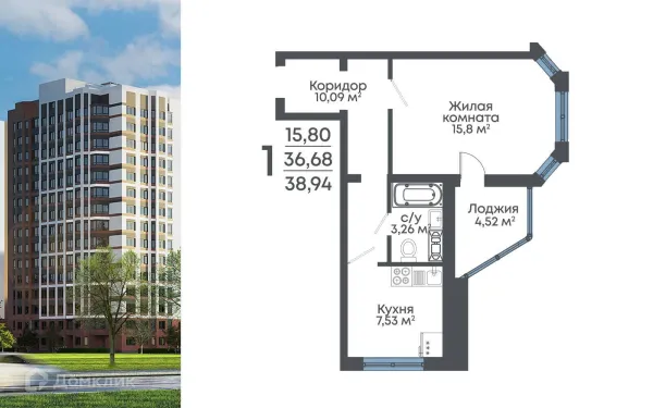 1 комн. квартира в Воронеже в ипотеку от 30 283 руб/месяц