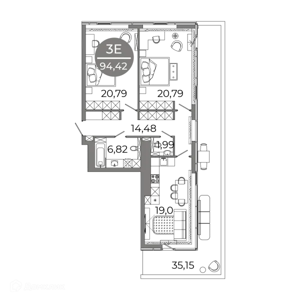 2 комн. квартира в Воронеже в ипотеку от 94 504 руб/месяц