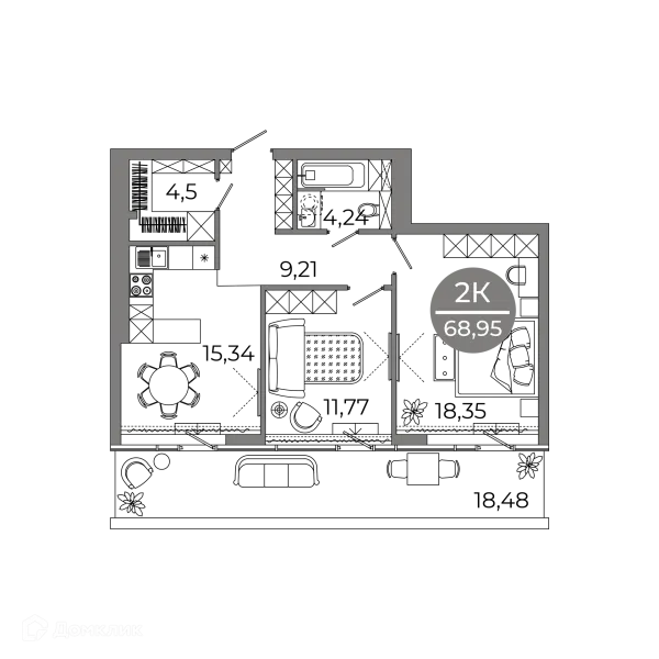 2 комн. квартира в Воронеже в ипотеку от 188 950 руб/месяц