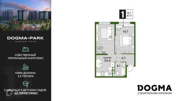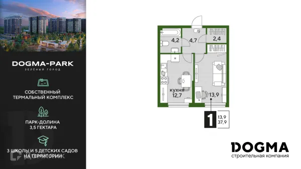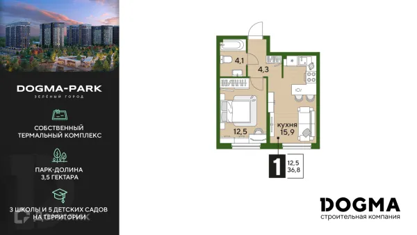 1 комн. квартира в Краснодаре в ипотеку от 42 425 руб/месяц