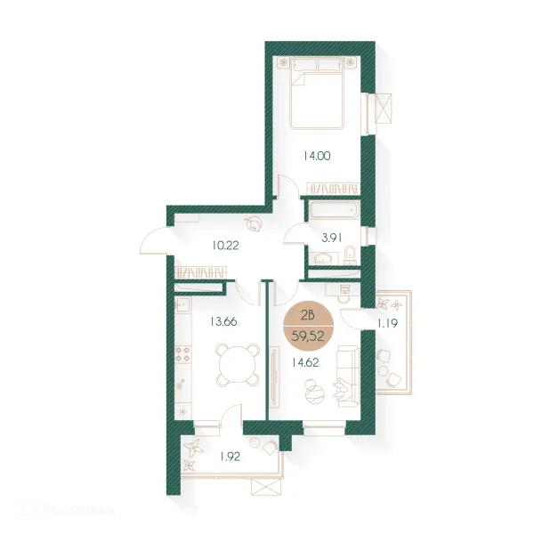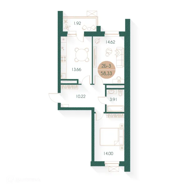 2 комн. квартира в Казане в ипотеку от 92 101 руб/месяц