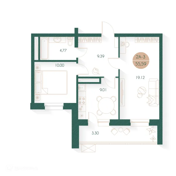 2 комн. квартира в Казане в ипотеку от 94 099 руб/месяц