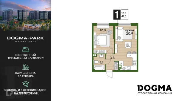 1 комн. квартира в Краснодаре в ипотеку от 46 127 руб/месяц