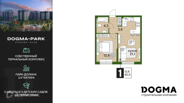 1 комн. квартира в Краснодаре в ипотеку от 43 264 руб/месяц
