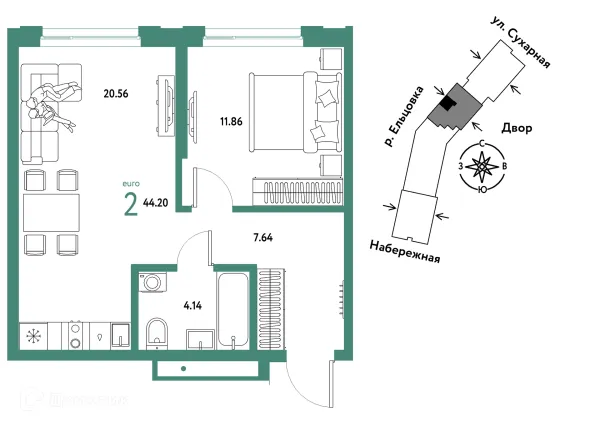 2 комн. квартира в Новосибирске в ипотеку от 55 573 руб/месяц
