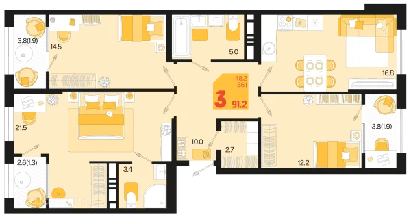 3 комн. квартира в Краснодаре в ипотеку от 87 161 руб/месяц