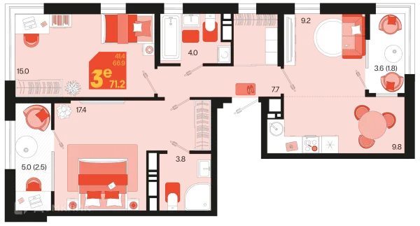 3 комн. квартира в Краснодаре в ипотеку от 71 667 руб/месяц