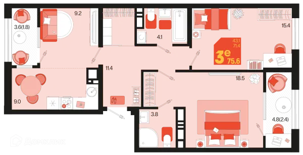 3 комн. квартира в Краснодаре в ипотеку от 73 493 руб/месяц
