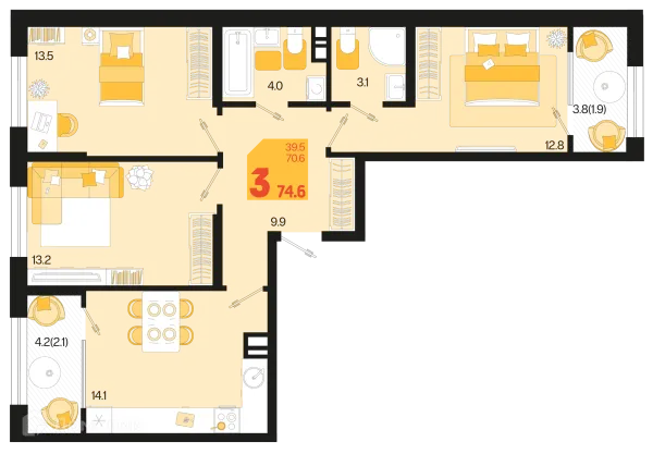 3 комн. квартира в Краснодаре в ипотеку от 99 805 руб/месяц