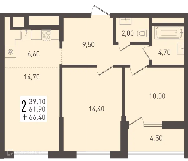2 комн. квартира в Краснодаре в ипотеку от 67 048 руб/месяц