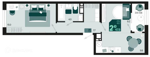2 комн. квартира в Краснодаре в ипотеку от 67 791 руб/месяц