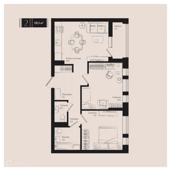 2 комн. квартира в Краснодаре в ипотеку от 125 731 руб/месяц