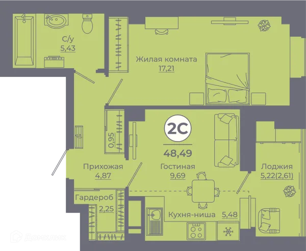 2 комн. квартира в Ростове-на-Дону в ипотеку от 42 394 руб/месяц