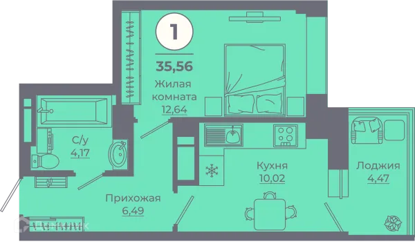 1 комн. квартира в Ростове-на-Дону в ипотеку от 35 191 руб/месяц