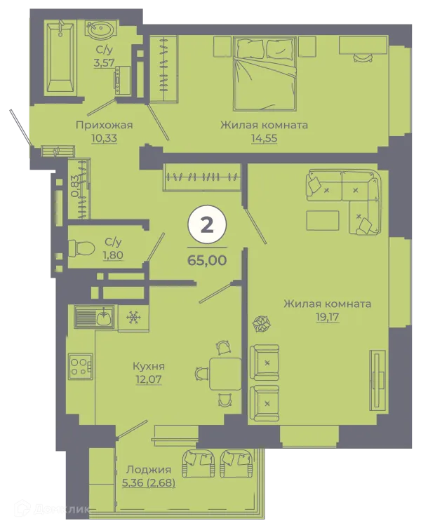 2 комн. квартира в Ростове-на-Дону в ипотеку от 55 839 руб/месяц